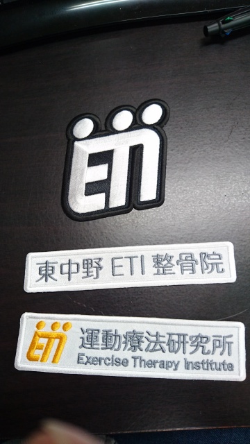 ロゴマークと社名の加工を今回は、刺繍ワッペンで、