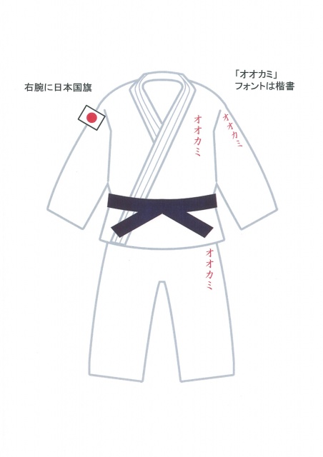 海外のお客様からのご依頼で、柔道着の右袖に日本国旗を直接刺繍加工と左胸・左袖・パンツの左腰に「オオカミ」とカタカナで刺繍加工をいたしました。